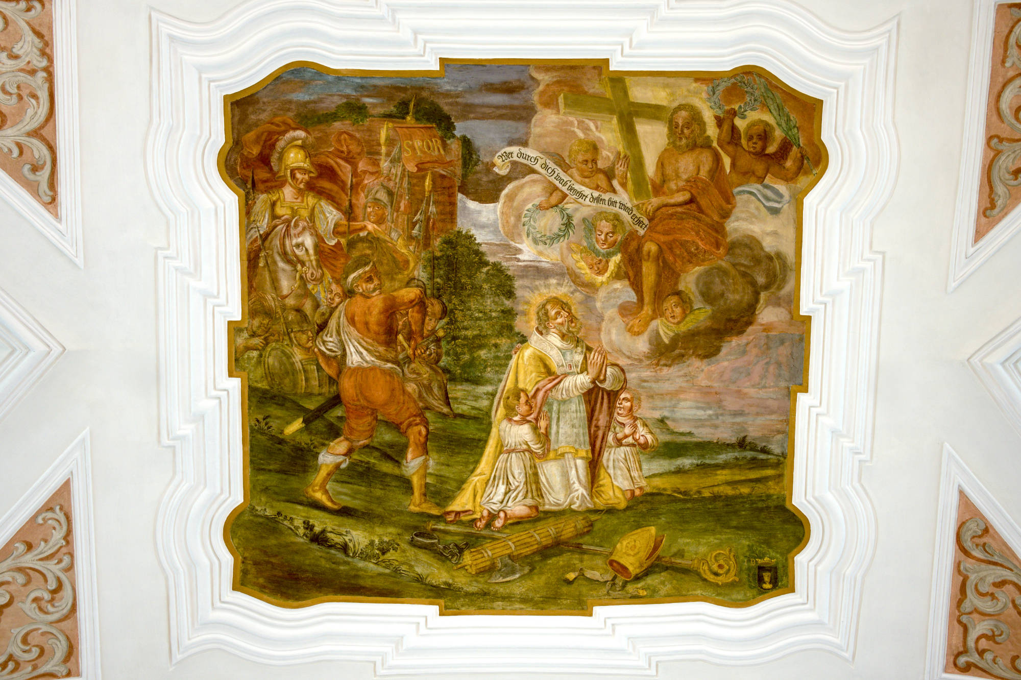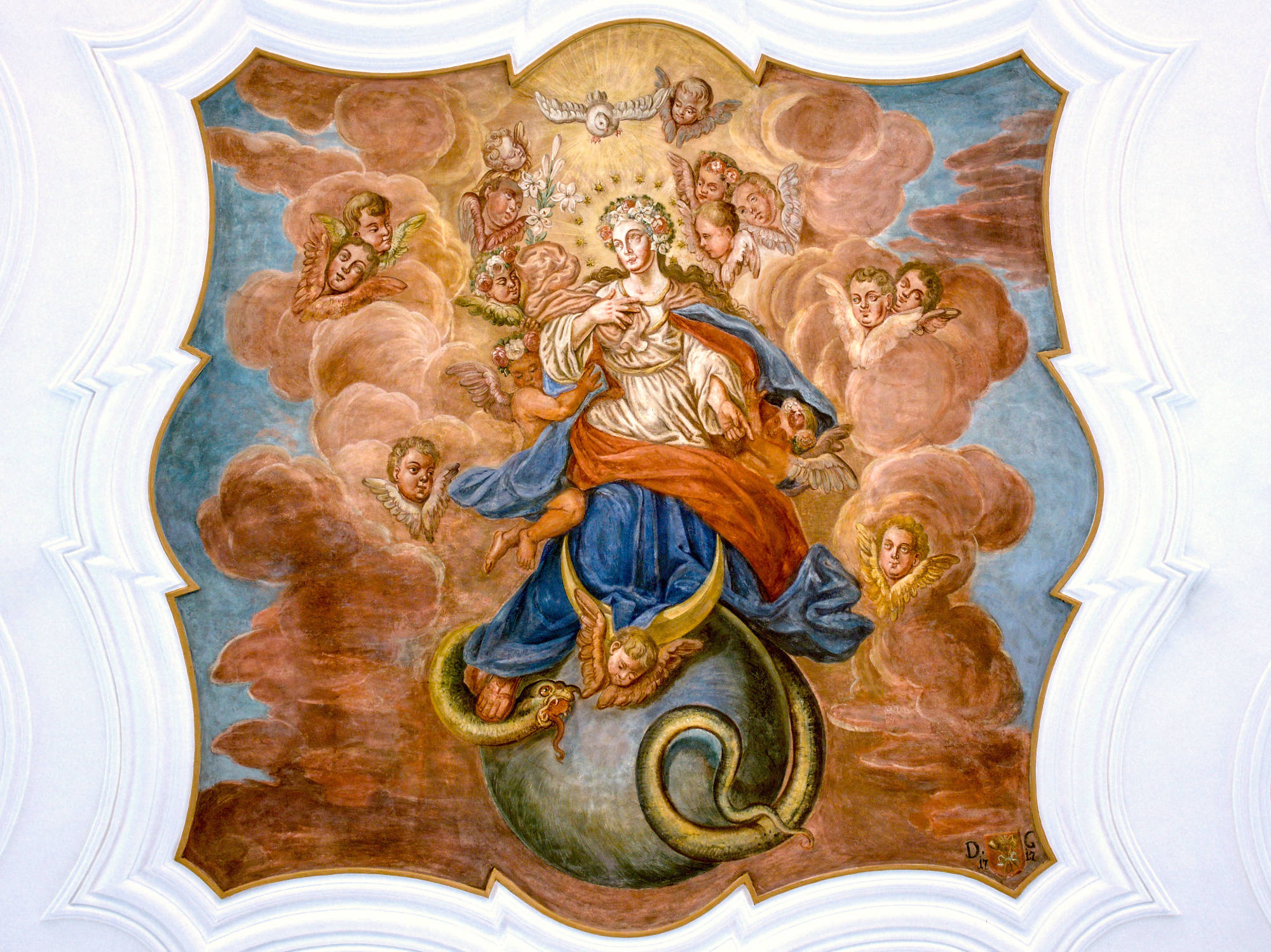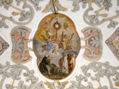 Das Langhaus zieren drei große Deckengemälde (hl. Geist, Märtyrertod des hl. Blasius und Maria als Sternengekrönte), sowie sechs Medaillons, die das Leben und Wirken des Hl. Blasius zeigen.